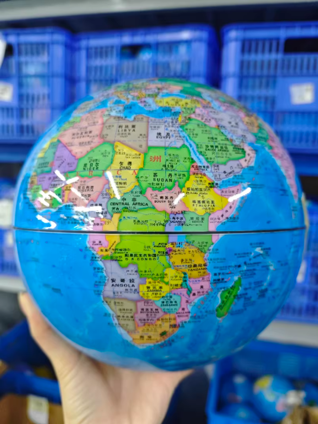 Mapa de impresión clara en globo brillante.